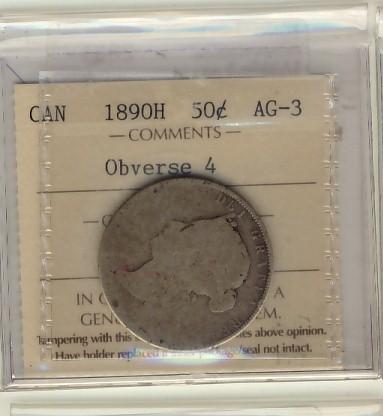 1890H 50¢ ICCS AG-3. Key date with visible date.