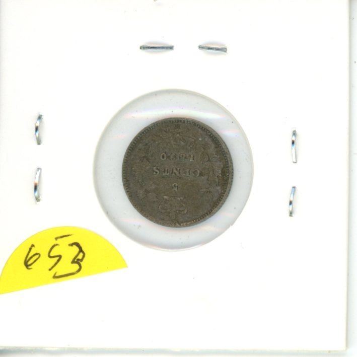 1890H Canadian Victorian Silver 5 Cents. Heaton Mint. F-15.