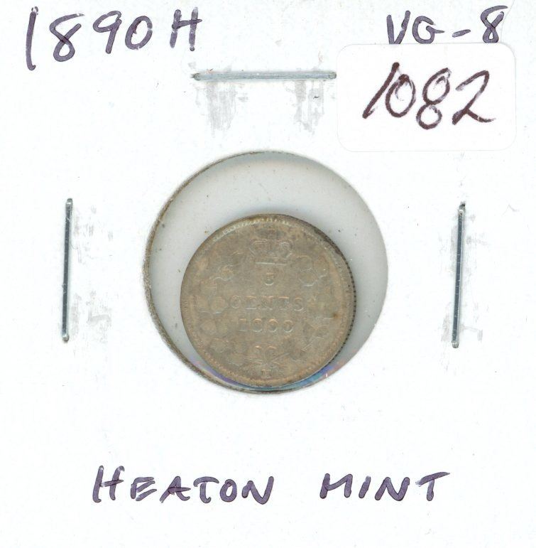 1890H Canadian Victorian Silver 5 Cents. Heaton Mint. VG-8.