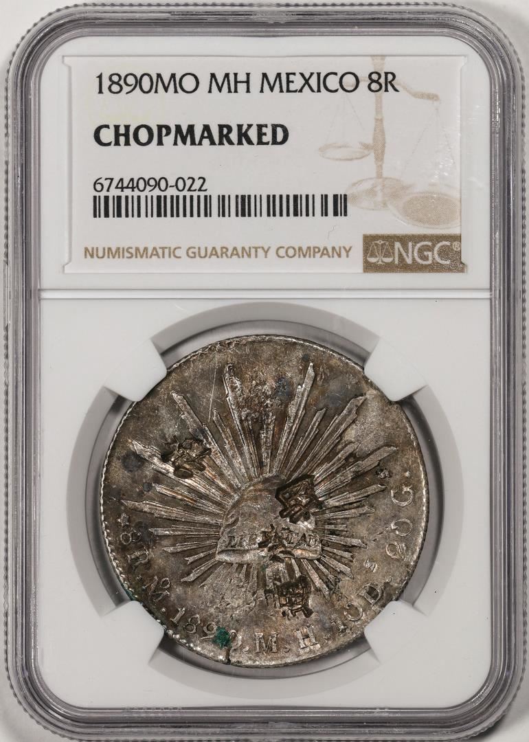 One 1890MO MH Mexico 8 Reales Silver Coin NGC Chopmarked. NGC Certified.