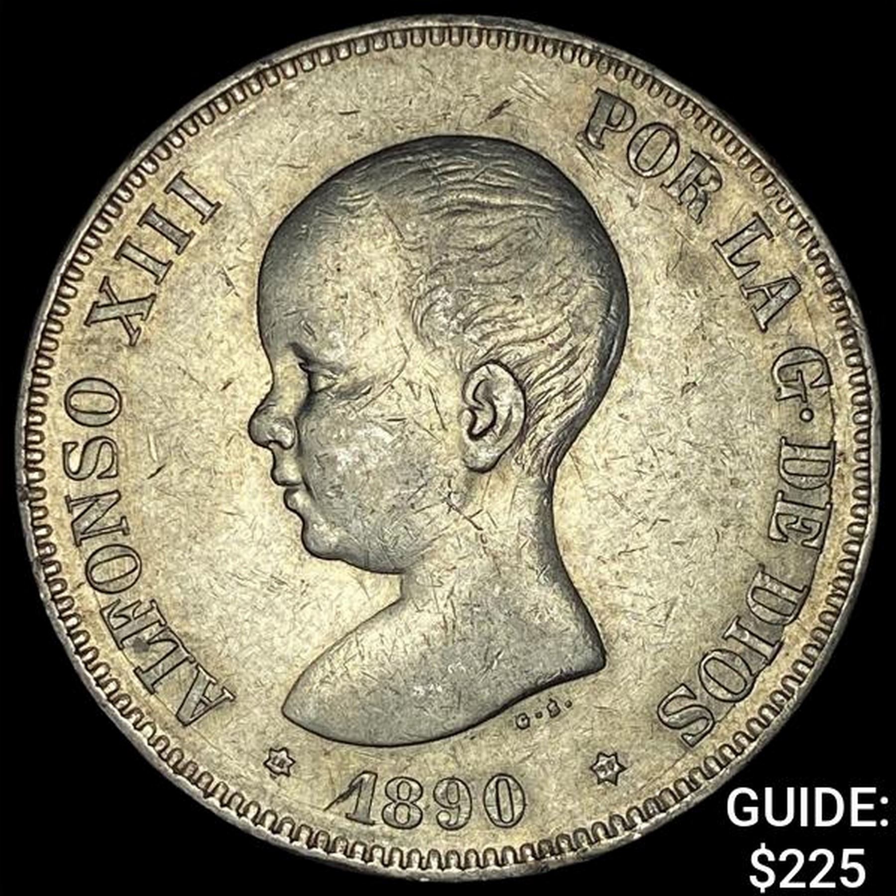 1890MP.M Spain Silver 5 Pesetas KM689 CLOSELY UNCIRCULATED