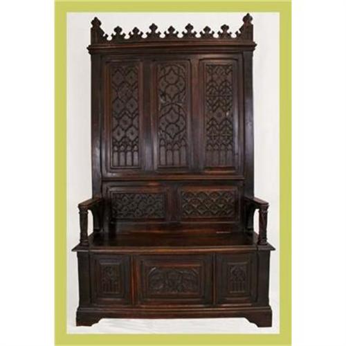 <tr><td>Title:1890s French Oak Gothic Revival Monks' Bench</td></tr>