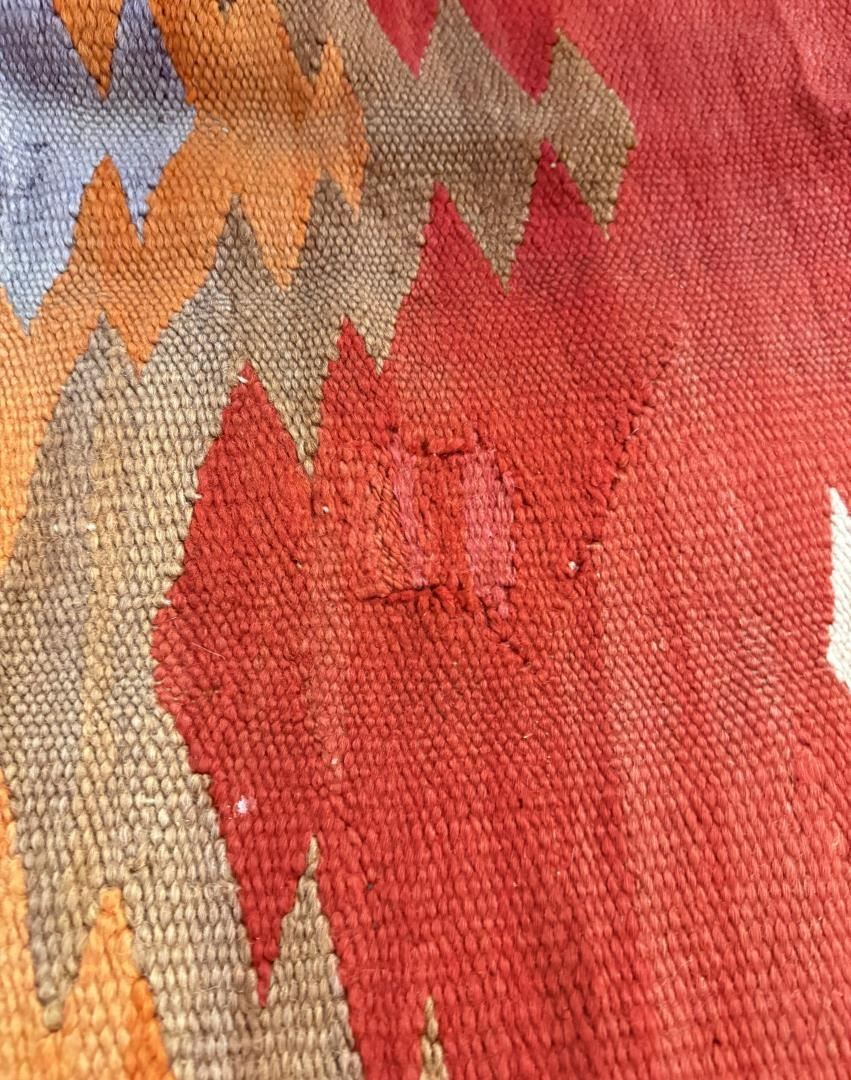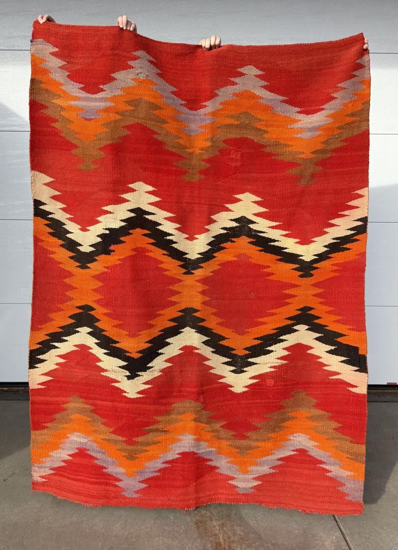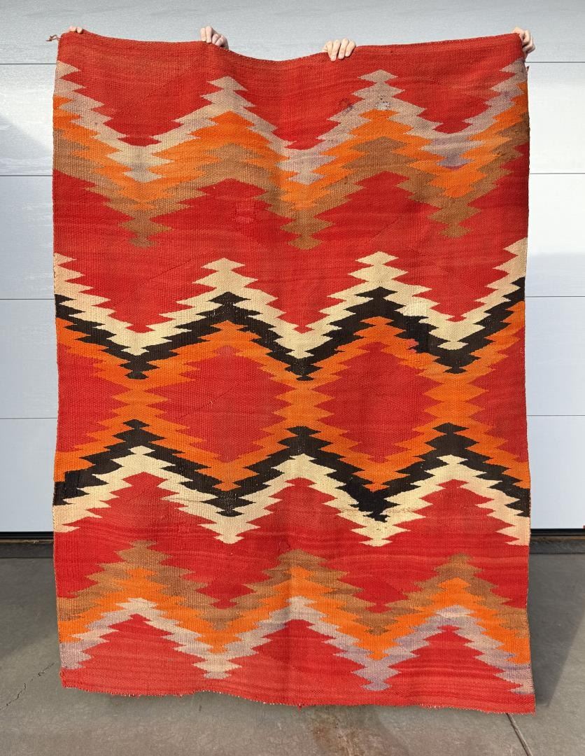 58" by 80". Nice early blanket. A couple old repairs as shown.