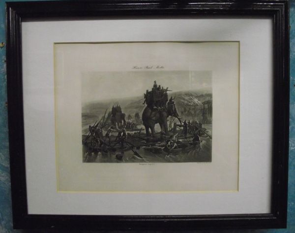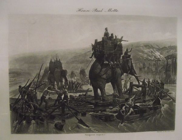 1890s Print Hannibal Crossing the Rhone- Henri-Paul Motte. Photogravure Goupil & Co. Framed and Matted, with information on the back. 5''H x 7''W. From Proctor Collection, Silver City, New Mexico.