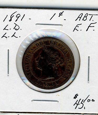 1891 1 Cent, Abt EF; LD LL