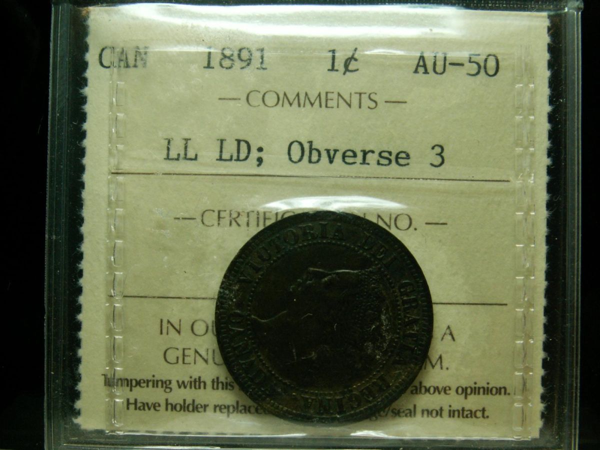 1891 1¢ LDLL Obv 3 ICCS AU50