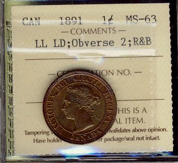 1891 1¢ LL LD ICCS MS63 RBObv. #2