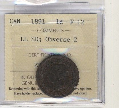 1891 1¢ LL SD Obv 2 ICCS F12.
