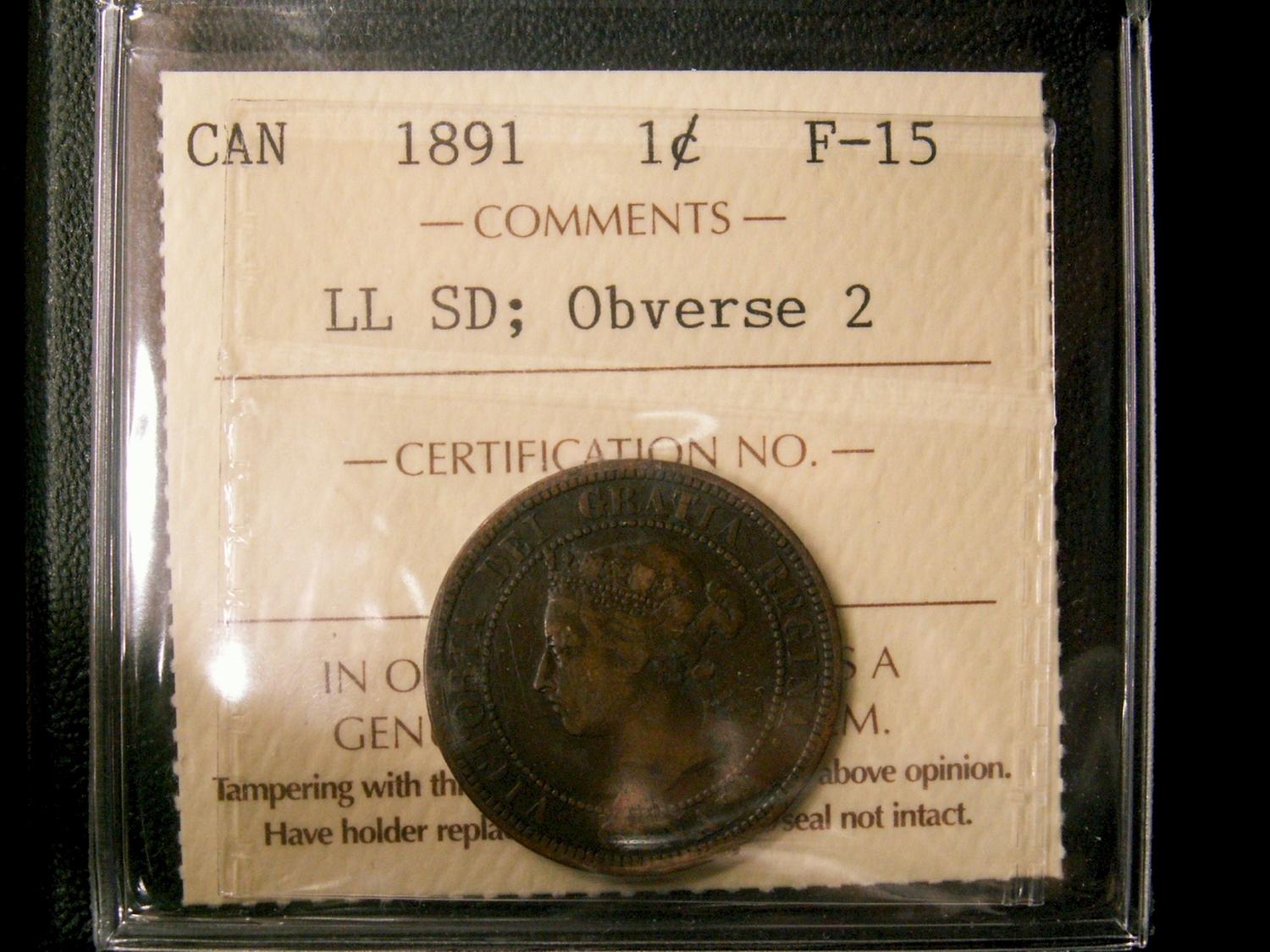 1891 1¢ LL SD Obv 2 ICCS F15.