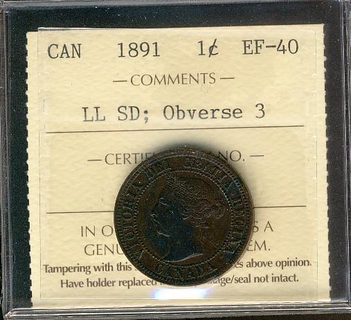 1891 1¢ LL SD Obv 3 ICCS EF40.