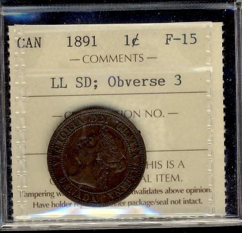 1891 1¢ LL SD Obv 3 ICCS F15.