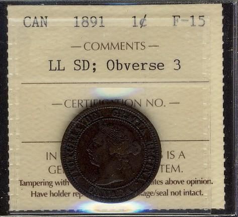 1891 1¢ LL SD Obv 3 ICCS F15.
