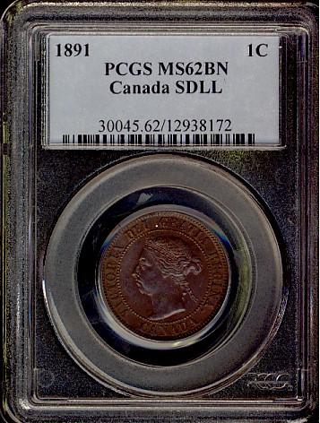 1891 1¢ LL SD PCGS MS62 BN. Rare in mintstate.
