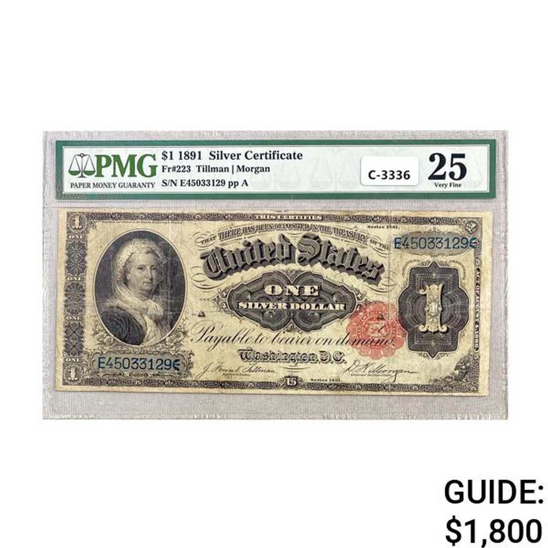 1891 $1 MARTHA SILVER CERT PMG VF25