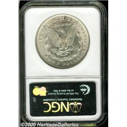 <B>1891<img border='0' src='http://www.heritagecoins.com/images/star.gif' width=10 height=10>$1 MS64 NGC.</B></I> Sharply struck and highly lustrous, with untoned surfaces that have a few wispy marks and luster grazes. A grease stain (as struck) over the second S in STATES, near the upper reverse rim, is mildly distracting to the eye.