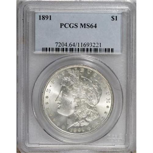 <B>1891 $1 MS64 PCGS.</B></I> PCGS Population (1198/83). NGC Census: (920/67). Mintage: 8,694,206. Numismedia Wsl. Price for NGC/PCGS coin in MS64: $500. (#7204)<BR><BR><B>Coin Engraver:</B> George T. Morgan<BR><BR><b>Shipping:</b> Coins & Currency (<a target="_blank" href="http://www.heritageauctions.com/common/shipping.php">view shipping information</a>)
