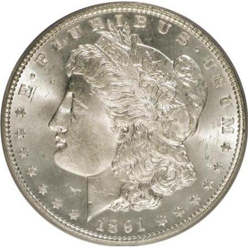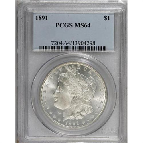 <B>1891 $1 MS64 PCGS.</B></I> PCGS Population (1232/86). NGC Census: (923/67). Mintage: 8,694,206. Numismedia Wsl. Price for NGC/PCGS coin in MS64: $500. (#7204)<BR><BR><B>Coin Engraver:</B> George T. Morgan<BR><BR><b>Shipping:</b> Coins & Currency (<a target="_blank" href="http://www.heritageauctions.com/common/shipping.php">view shipping information</a>)