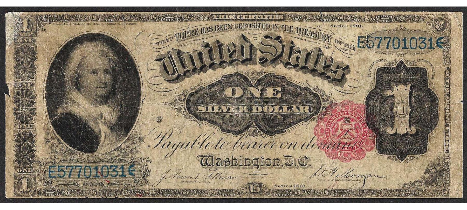One 1891 $1 Martha Washington Silver Certificate Note - Splits.