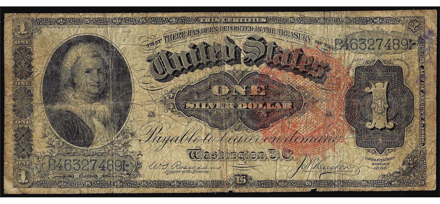 One 1891 $1 Martha Washington Silver Certificate Note.