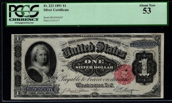 One 1891 $1 Martha Washington Silver Certificate PCGS 53.