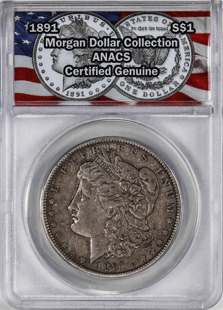 One 1891 $1 Morgan Silver Dollar Coin ANACS Genuine. ANACS Certified.