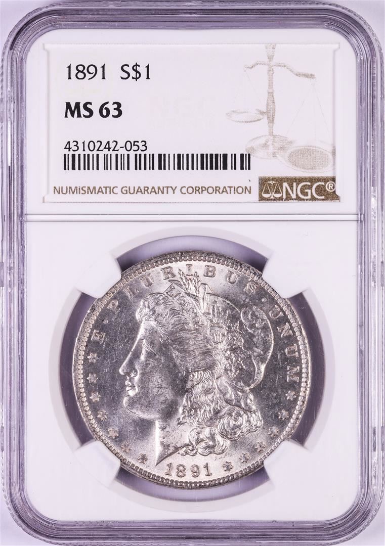One 1891 $1 Morgan Silver Dollar Coin NGC MS63. NGC Certified.