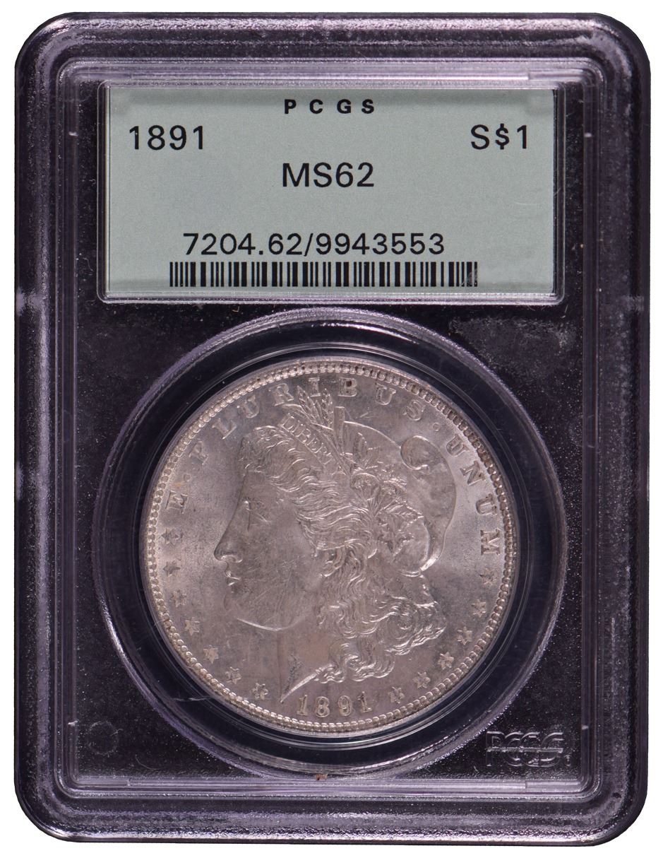 One 1891 $1 Morgan Silver Dollar Coin PCGS MS62.