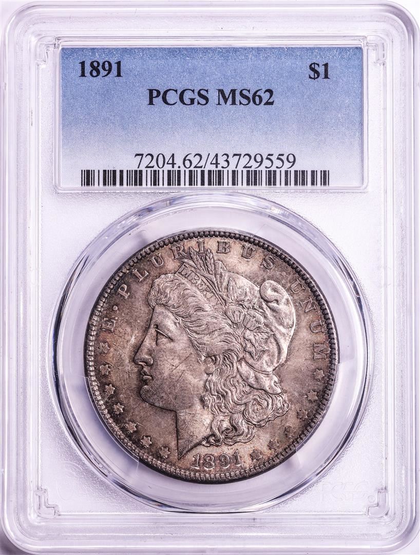 One 1891 $1 Morgan Silver Dollar Coin PCGS MS62. PCGS Graded.