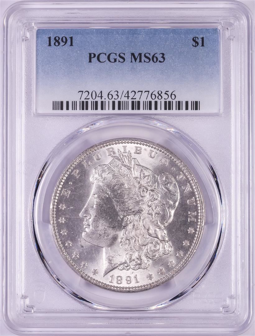 One 1891 $1 Morgan Silver Dollar Coin PCGS MS63. PCGS Graded.
