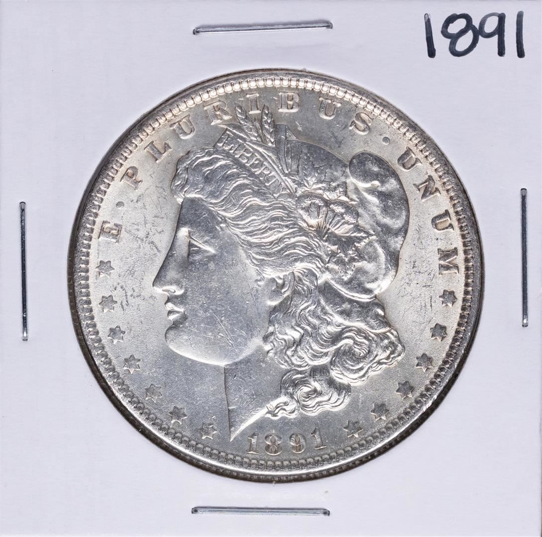 One 1891 $1 Morgan Silver Dollar Coin.