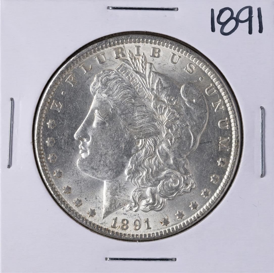 One 1891 $1 Morgan Silver Dollar Coin.