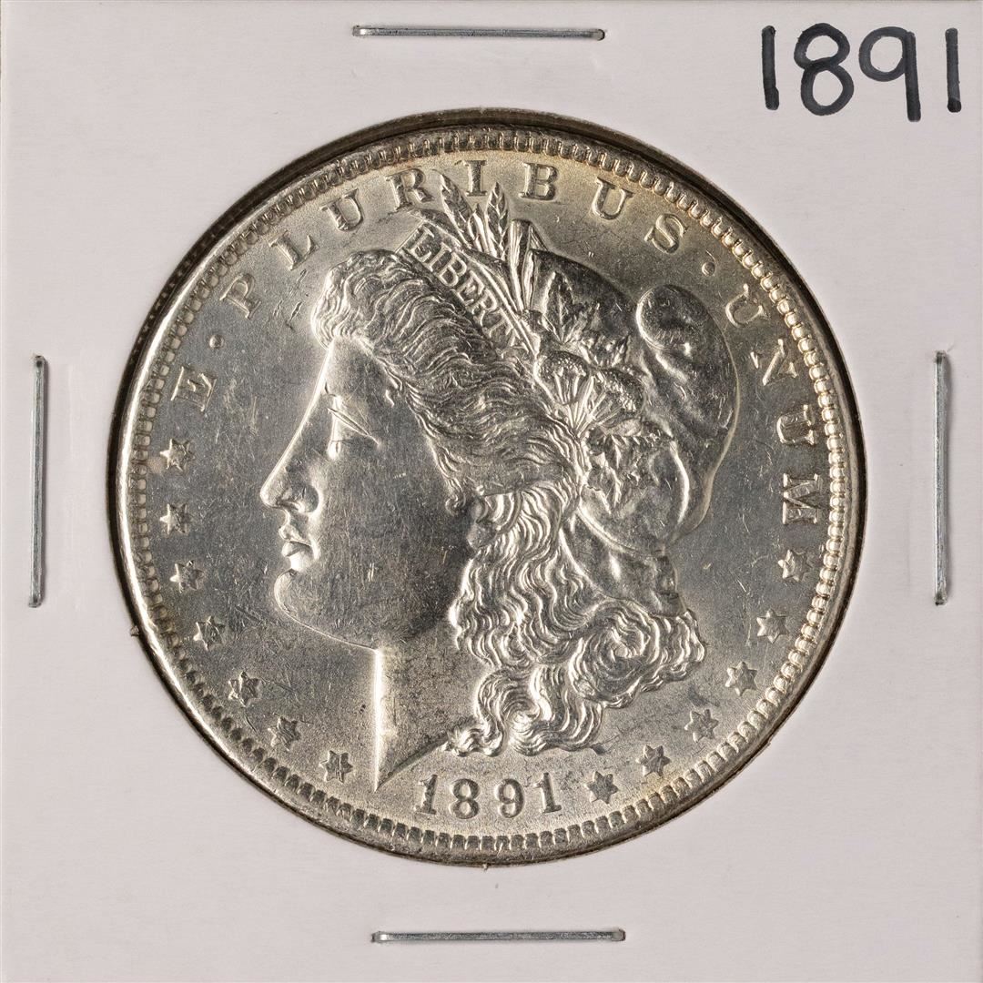One 1891 $1 Morgan Silver Dollar Coin.