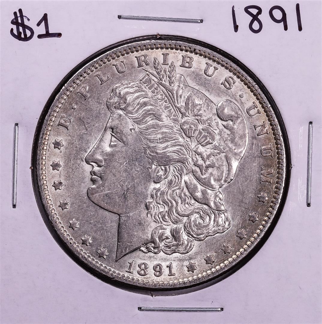 One 1891 $1 Morgan Silver Dollar Coin.