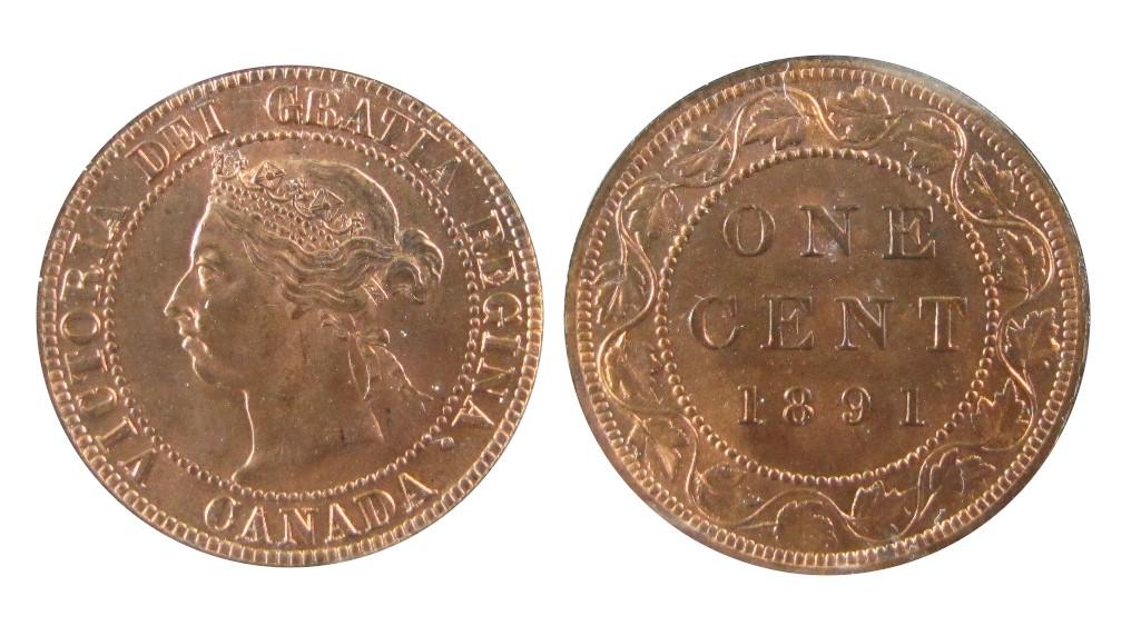 1891 1¢ Obv 3 LLSD ICCS MS64RD. 95% red and sharp strike. TOP 3 by ICCS POP report.