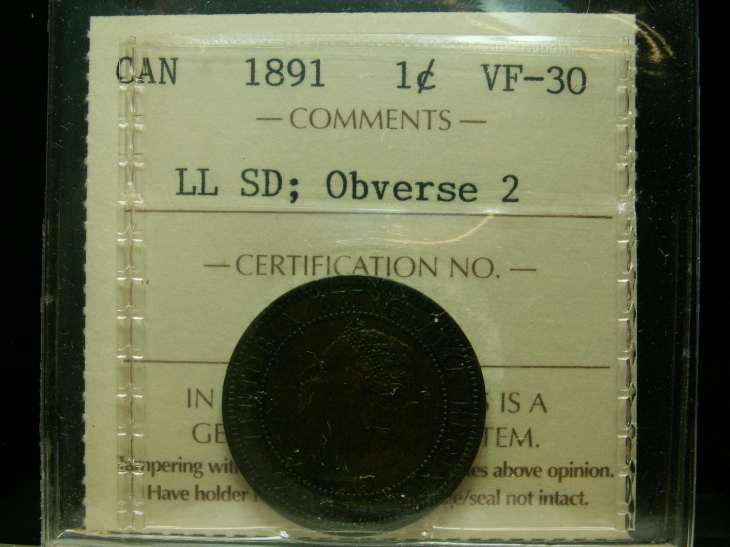 1891 1¢ SDLL Obv 2 ICCS VF30
