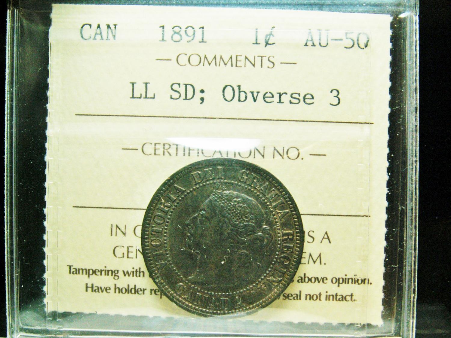 1891 1¢ SDLL Obv 3 ICCS AU50