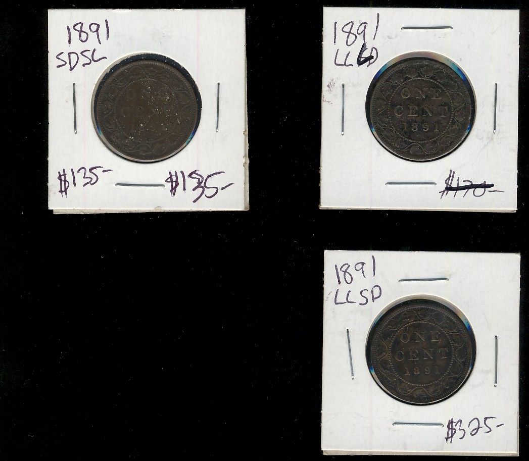 1891 1¢ SDLL, SDSL, LLLD. Lot of 3 coins VG to VF.