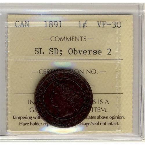 1891 1¢ SDSL, Obv 2 ICCS VF-30