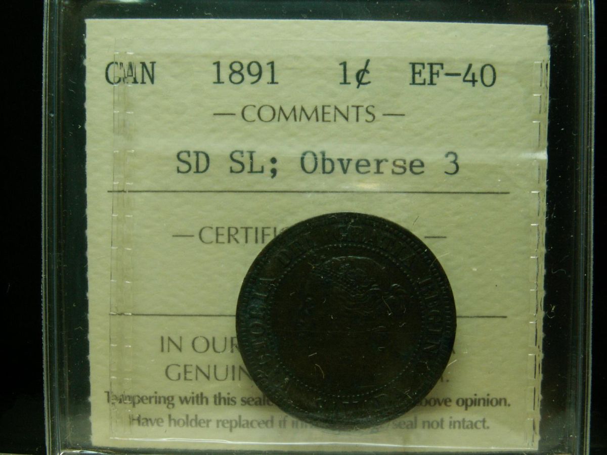 1891 1¢ SDSL Obv 3 ICCS EF40