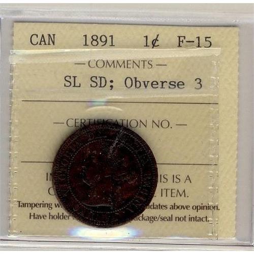 1891 1¢ SDSL,Obv.3 ICCS F-15