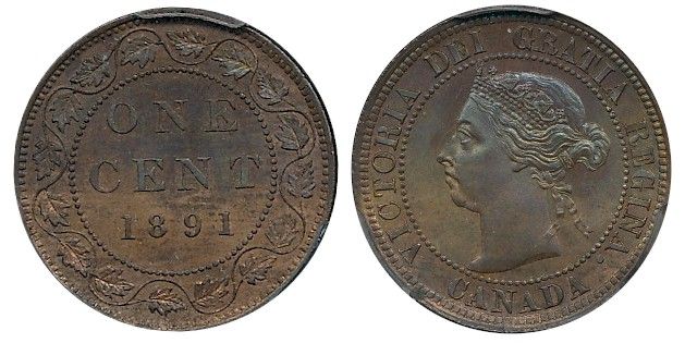1891 1¢ SDSL PCGS MS65BN. Superb and flashy Red/Brown lustre.