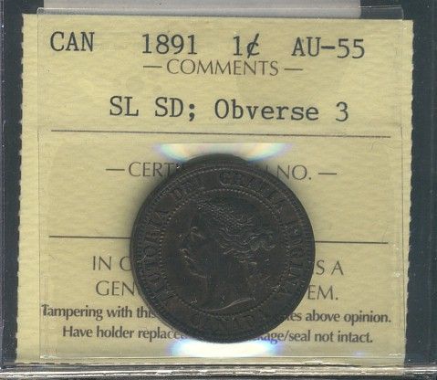 1891 1¢ SL SD Obv 3 ICCS AU55.