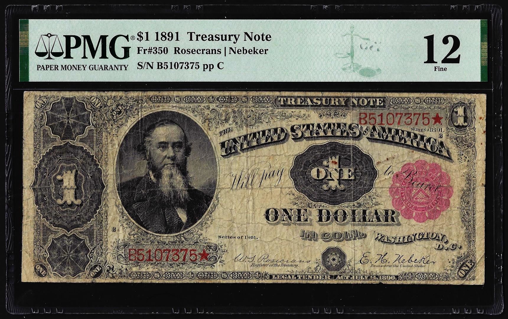 One 1891 $1 Stanton Treasury Note Fr.350 PMG Fine 12. PMG Certified.