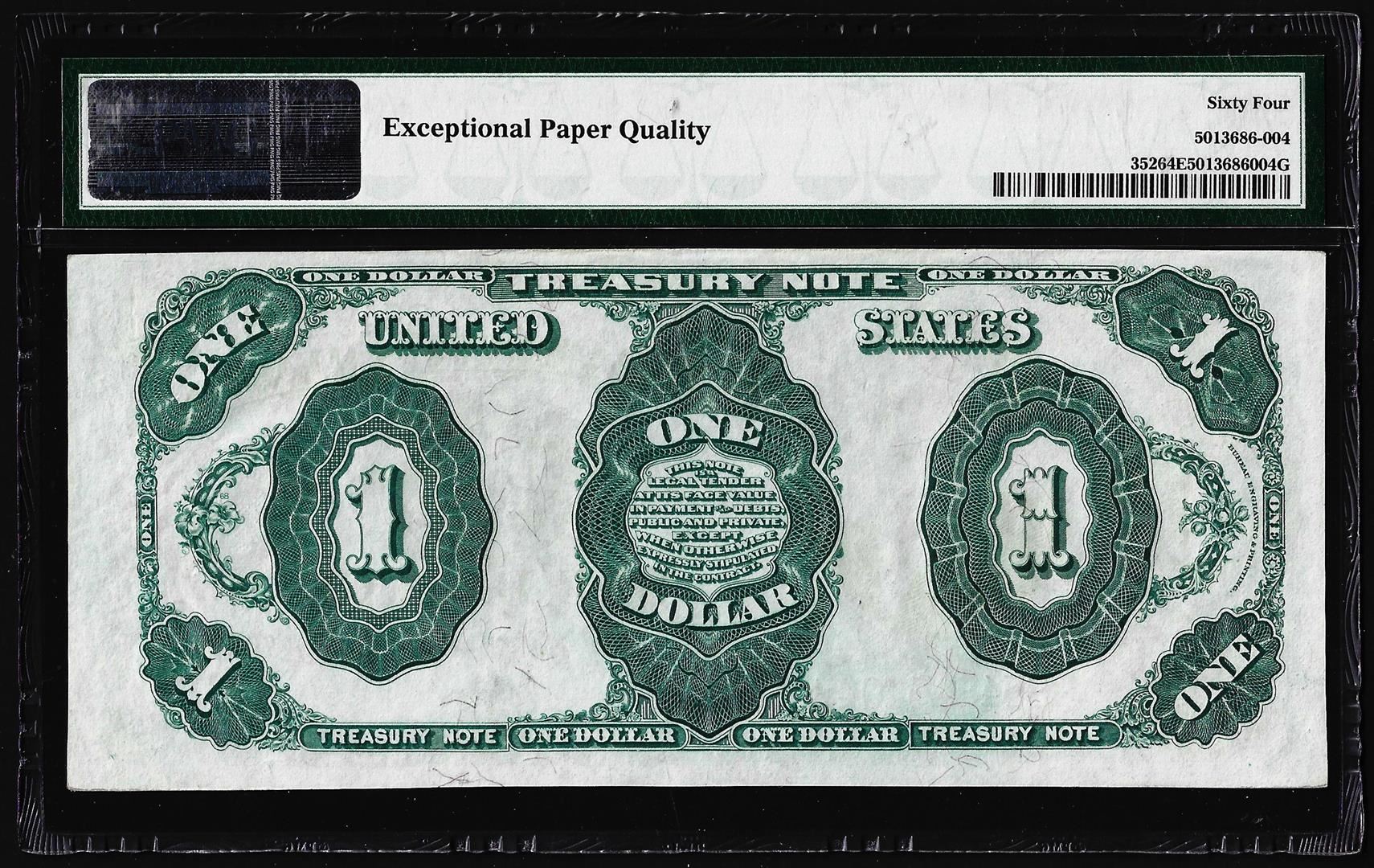 One 1891 $1 Treasury Note Fr.352 PMG Choice Uncirculated 64EPQ. PMG Certified.