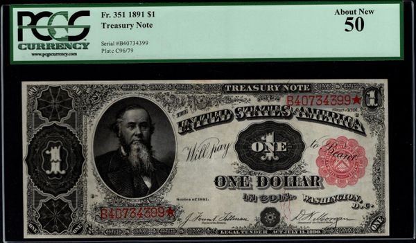 One 1891 $1 Treasury Note PCGS 50.