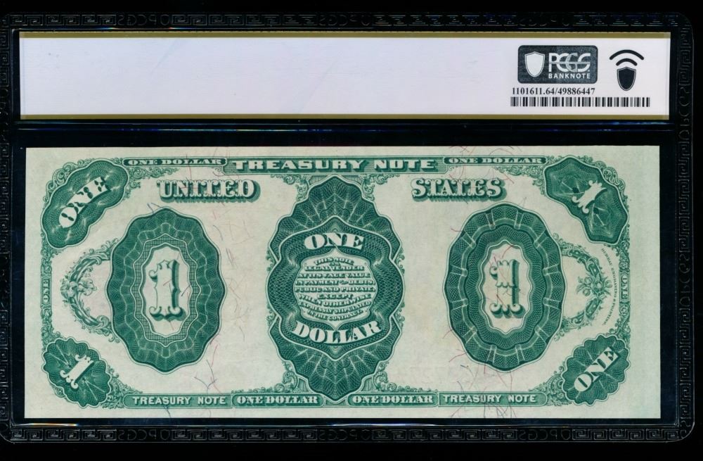 One 1891 $1 Treasury Note PCGS 64PPQ.