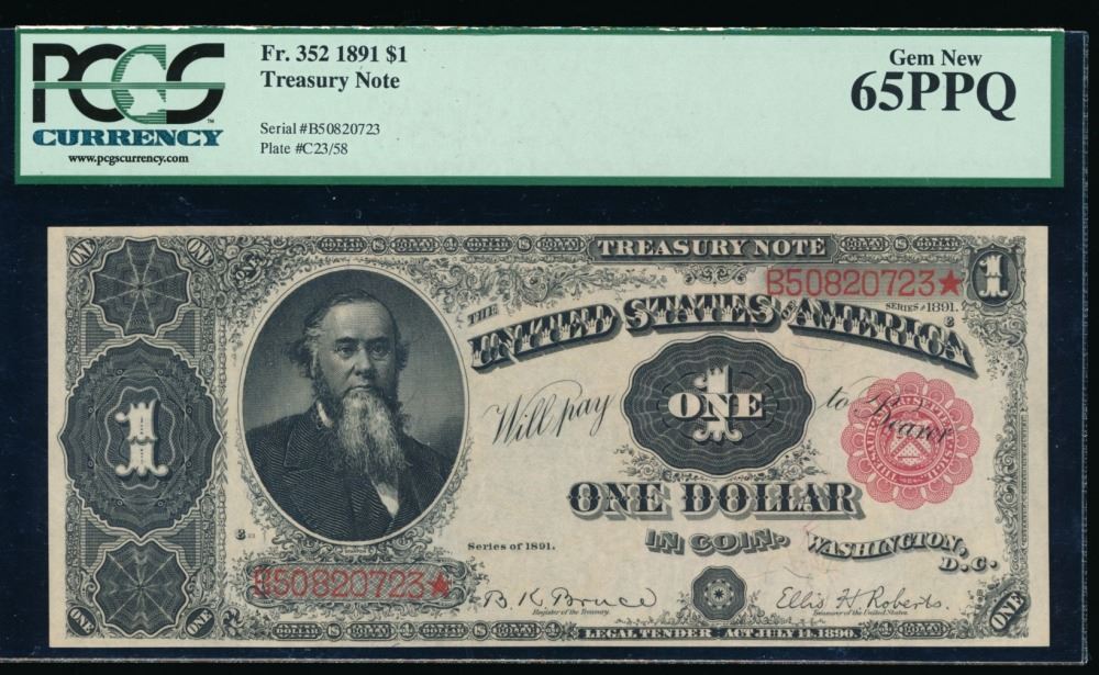 One 1891 $1 Treasury Note PCGS 65PPQ.