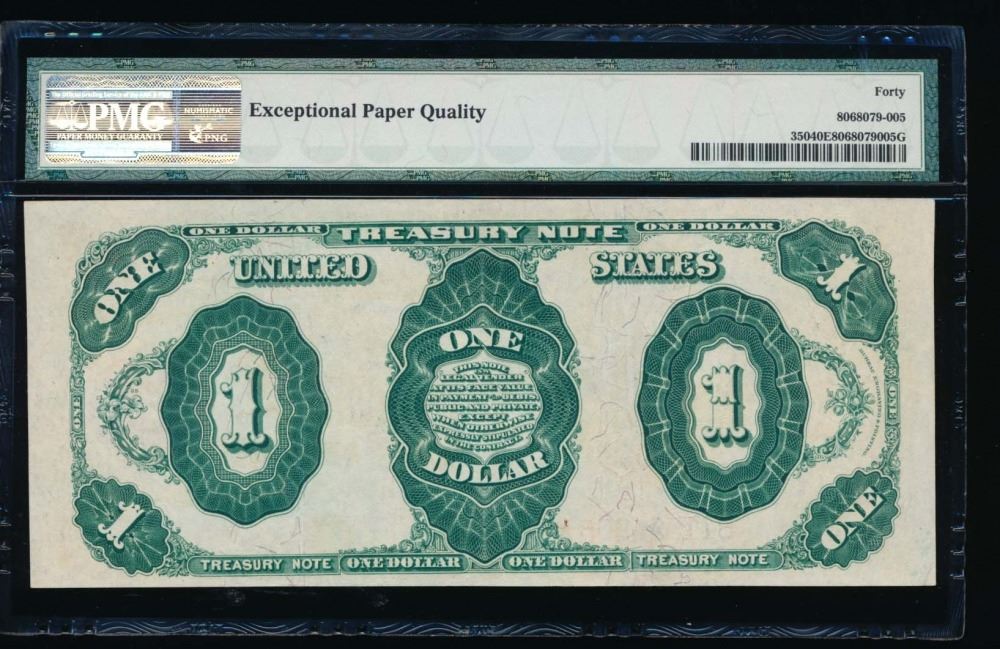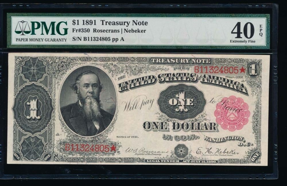 One 1891 $1 Treasury Note PMG 40EPQ.