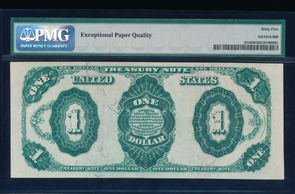 One 1891 $1 Treasury Note PMG 65EPQ.
