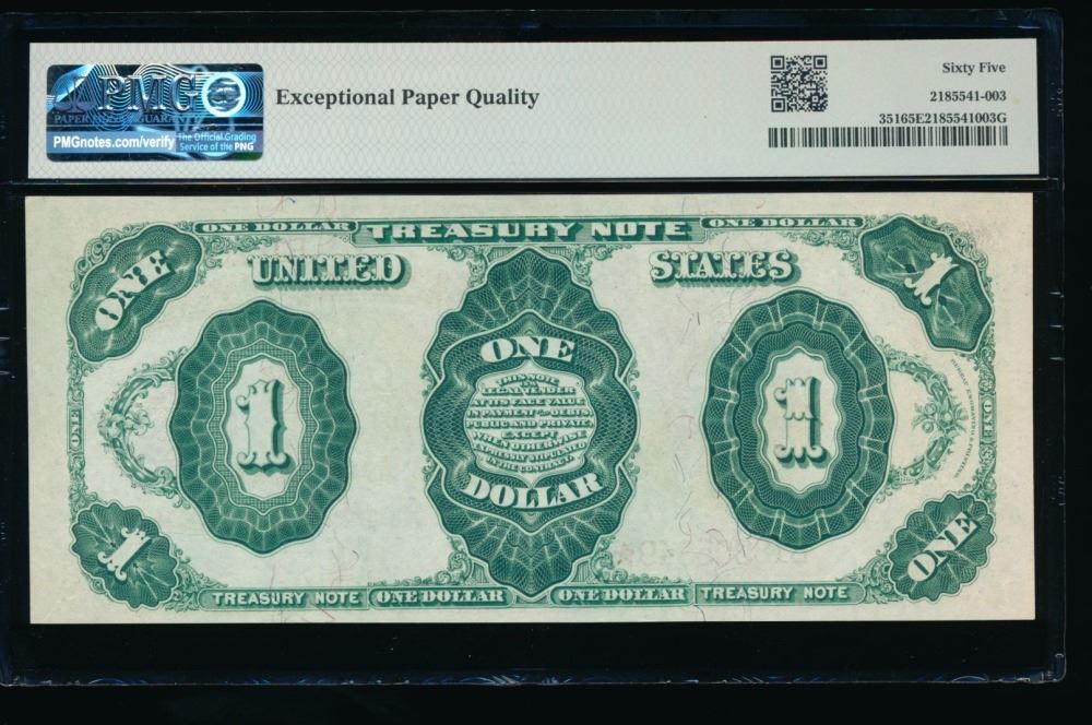One 1891 $1 Treasury Note PMG 65EPQ.